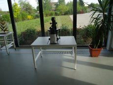 Basic version of the AV table for inverted microscopes. Can be dismantled to 4 parts for easy transportation - installation by one person is possible. No shelves - simple design.