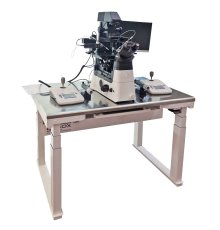 MHA - Motoricky výškově nastavitelný zcela vybavený AV stůl druhé generace s aktivním zařízením ARIS75, provedení nerez. Možno pracovat i ve stoje anebo hodně nízko. 4 pozice uložitelné do paměti. Kontrola zachování vodorovného stavu pracovní plochy.