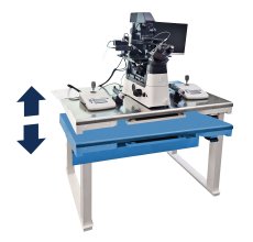 MHA - Motoricky výškově nastavitelný zcela vybavený AV stůl druhé generace s pasivním zařízením SOTO75, provedení nerez. Možno pracovat i ve stoje anebo hodně nízko. 4 pozice uložitelné do paměti. Kontrola zachování vodorovného stavu pracovní plochy.
